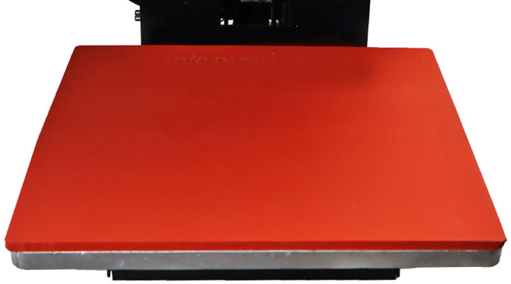 B3: Đặt vật liệu cần in chuyển(ép) lên bề mặt tấm silicon chịu nhiệt(màu đỏ).