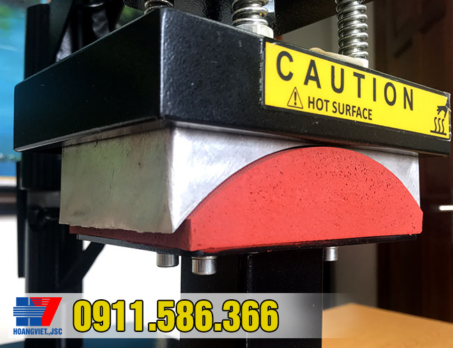 - B4: Đặt giấy in đã in sẵn hình mong muốn lên mũ cần in (Đặt mặt có hình ảnh úp xuống mặt mũ cần in). Lưu ý là không nên để lực ép quá 30kg tránh cho vật liệu bị biến dạng.