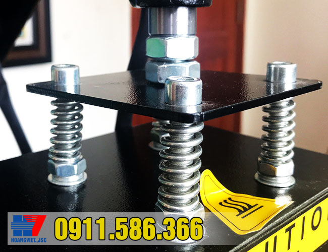 - B5: Kéo cần gạc xuống để mâm trên ép xuống mâm dưới. Sau khi đồng hồ chạy đủ thời gian đã cài đặt ban đầu thì chuông báo sẽ kêu, khi đó hãy đẩy cần gạc lên để mâm trên ra khỏi bề mặt của vật liệu cần in.
