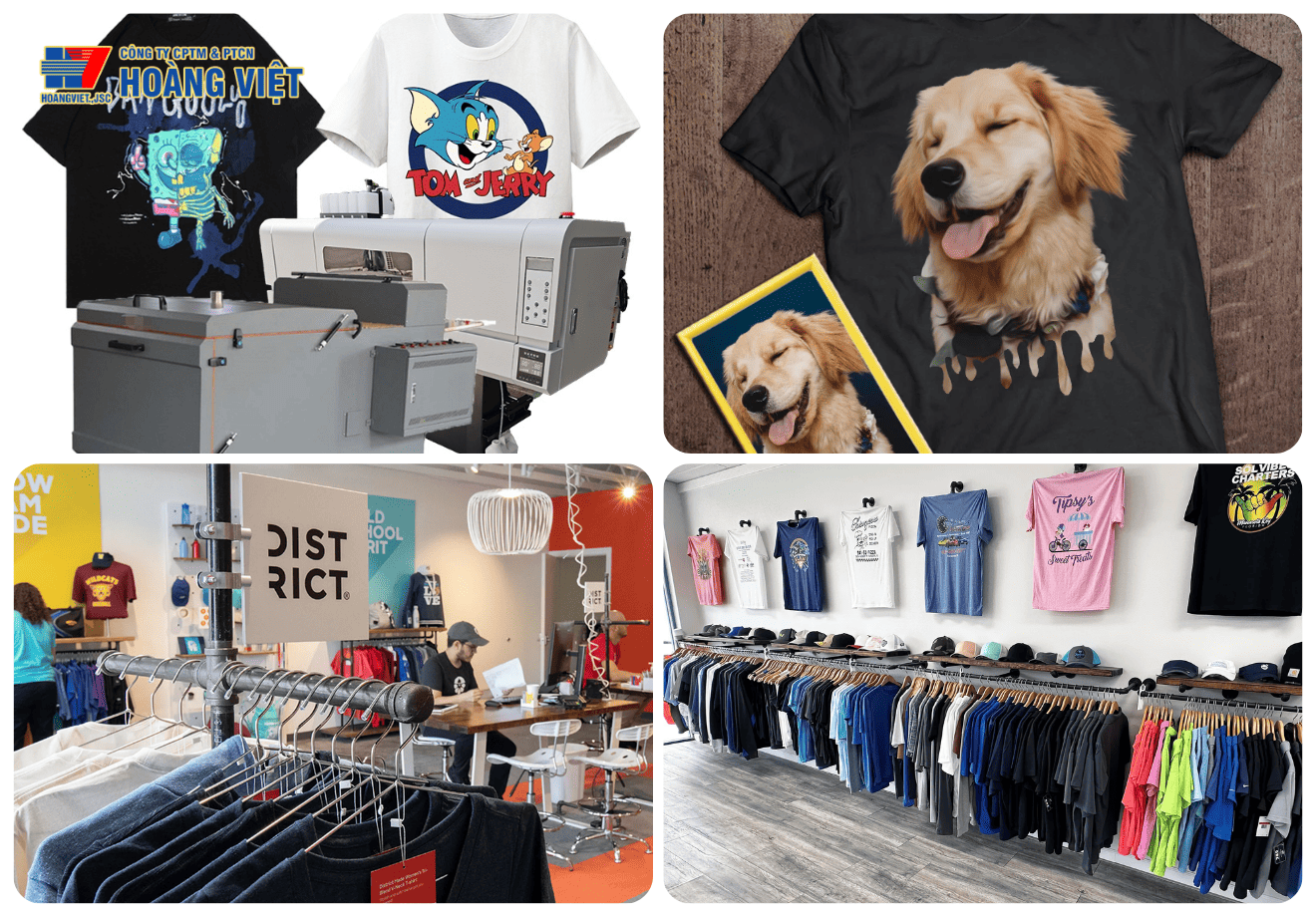 Phổ biến nhất là các shop in áo theo yêu cầu. Bạn có thể nhận đơn lẻ từ khách hàng, in nhanh và giao ngay mà không cần tồn kho sản phẩm.