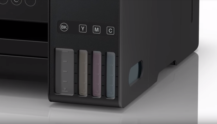 - Máy có thiết kế bình mực độc đáo khác với các phiên bản dòng L Series trước kia giúp quan sát lượng mực dễ dàng hơn.